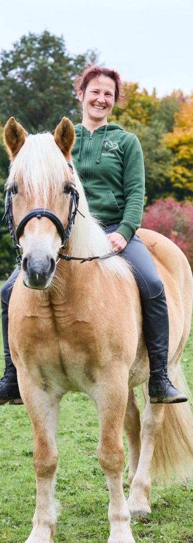 Sie verzeiht ganz viele Reitfehler und gibt unseren Reitschülern ein gutes und sicheres Gefühl. Manchmal ist unsere Feli ein bisschen stur, was so typisch Haflinger ist, lässt sich aber ganz schnell überzeugen.